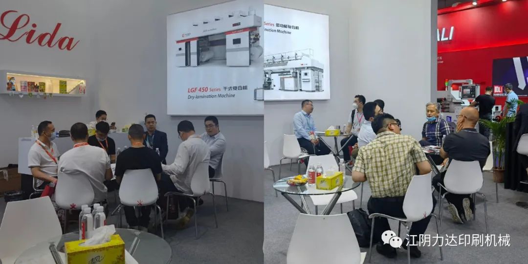 在“碳中和”、“碳達(dá)峰”、“限塑令”升級(jí)下的橡塑行業(yè),發(fā)展循環(huán)經(jīng)濟(jì)、節(jié)能減排等正當(dāng)其時(shí)。這不僅僅是各界熱議的話(huà)題與挑戰(zhàn),更暗藏著巨大的新市場(chǎng)、新機(jī)遇,眾多新能源、5G、新材料等企業(yè)聞?dòng)嵍鴣?lái)。開(kāi)展四天來(lái),許多觀眾紛紛來(lái)到展臺(tái)進(jìn)行商務(wù)洽談,其中公司最新研發(fā)的LDF 450型多功能復(fù)合機(jī)以及LGF 450型干式復(fù)合機(jī)收到了客戶(hù)的廣泛關(guān)注,咨詢(xún)客商不斷。該機(jī)型最高機(jī)械速度為450m/min,支持無(wú)溶劑、網(wǎng)線(xiàn)輥、半柔版、定點(diǎn)涂布等多種涂布方式,實(shí)現(xiàn)一機(jī)多用,為客戶(hù)節(jié)約更多的成本,實(shí)現(xiàn)更高的經(jīng)濟(jì)效益。